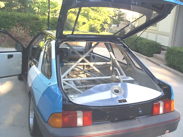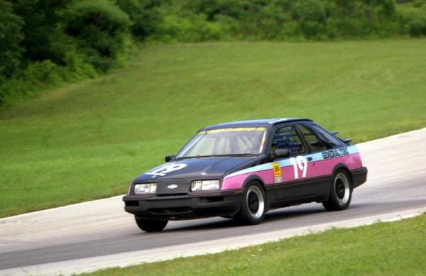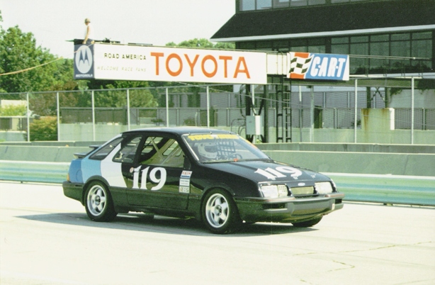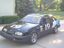| The Merkur XR4Ti IMSA IS (International Sedan division) race car was built and campaigned as a privateer effort by Bill Topping of Maryland (and later Georgia). He raced it full time in IMSA for the 4 years 1988 through 1991. The car is listed, and is in some of the action photos, in the IMSA yearbooks for those years. All of the entry/tech stickers are still on the A pillar roll bar. As allowed by IMSA rules the IS cars were more advanced (and faster) than the Firestone Firehawk series field. There were a few factory backed teams and well known drivers in IS as well. Many races had broadcast television coverage. The International Sedan division rules allowed numerous chassis modifications but limited drive-train improvements. The Ford 2.3 liter turbocharged motor remained mostly stock with the allowance to add an intercooler (XR4Ti's were not factory intercooled). Stock XR4Ti's could easily exceed the factory stated 195 hp which combined with weight reduction and superb handling made the car very fast. Topping started construction of the car in 1986 and completed it in 1988. It was a complete ground up construction from the bare unibody shell up. Every inch inside and out was stripped and prepped. The car received a full cage, gauges, Accusump, fuel cell, fire system, Tilton/JFZ racing brake system, custom shock tower camber plates, adjustable coil-over front struts, adjustable lower radius rods (compression struts), custom sway bars front and rear, heim joints everywhere, intercooler, oil cooler, plus lots of really trick pieces and modifications too numerous to list. Weight is around 2,500 lbs. Topping hand built the car himself and the workmanship is outstanding. The car ran well in the top half of the pack at numerous tracks in the eastern half of the country and as far west as Topeka and San Antonio. The '91 season was the last year IMSA allowed turbocharged cars in the IS class, and then only if the car had been run in the prior year. The car was stored from '91 through '96 and then purchased by Peter Cipolla of Kansas City, Missouri. Cipolla found the car in excellent, run-able condition. Since 1997 Cipolla has gone through the car completely, yet maintained the integrity of the car as Topping built it. One exception was to install a larger intercooler to support the increased horsepower the engine produces today. To date the total development costs in the car exceed $70K. Cipolla also owns the Merkur XR4Ti IMSA GTU race car that was built for Ford by Kent Racing of Hawthorne, CA and campaigned during the 1985 through 1988 seasons. The Merkur IS and GTU cars are documented in the IMSA yearbooks. Cipolla runs the IS car on-track frequently, primarily at Ford/Shelby club events around the country. It still runs well into the top half of the pack against a field of V8's! October 2006 |